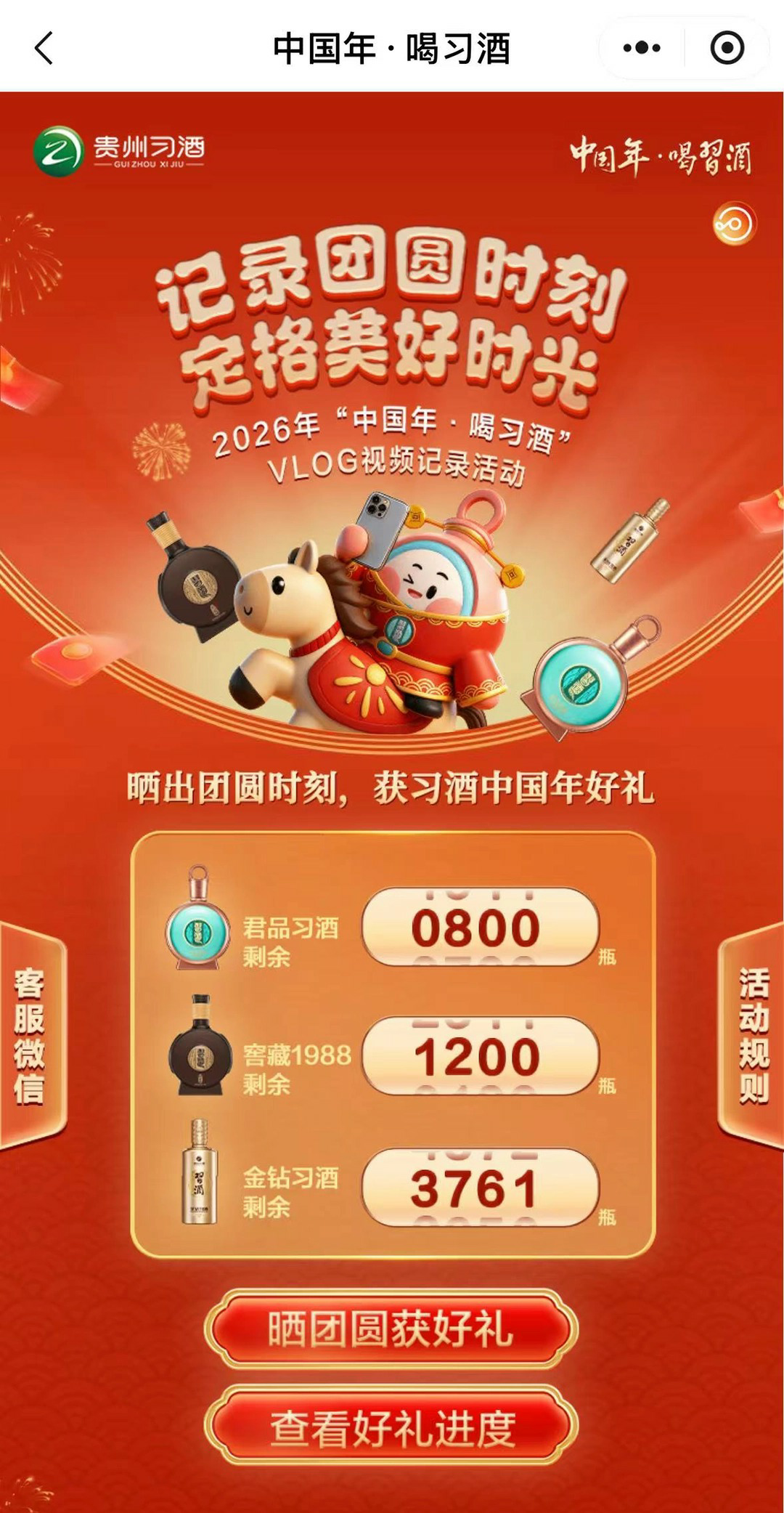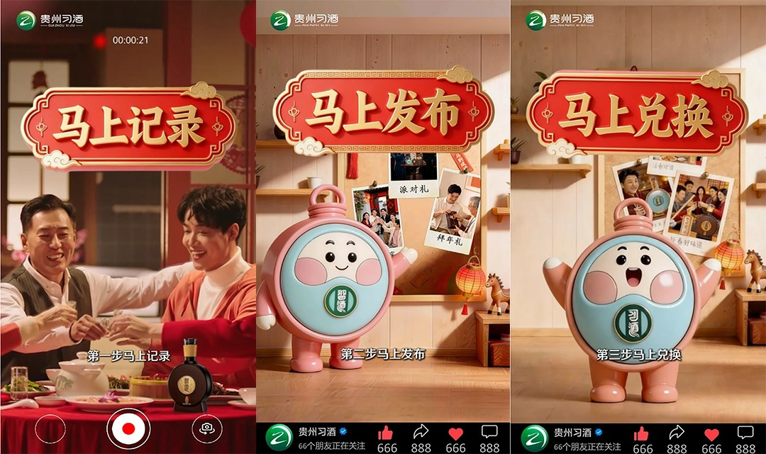 为提升参与积极性,活动还设计了清晰且有吸引力的激励路径:参与者视频所获的点赞转发可累积为“互动量”,并能在专属小程序中兑换不同级别的习酒产品。
