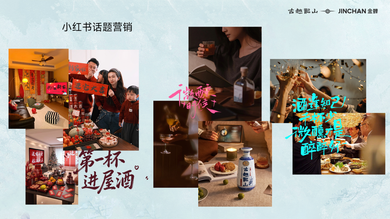 再次,是“内容共创”激发情感,构建可持续的社交资产。 本次合作最具匠心的部分,在于对社交内容的深度规划。双方将以小红书为核心阵地,发起大规模话题营销,携手家居家装、生活类博主及海量KOC,共同创作数百篇笔记。其目标不仅是500万+的话题总曝光,更是为了激发超过300篇的真实用户UGC。通过“#把日子挂在窗上”、“#窗帘后的微醺时刻”等充满画面感和情绪价值的话题,引导用户自发分享他们的生活故事,将产品深度融入“治愈”、“悦己”、“温馨”的生活场景中。这种由品牌播种、用户共创的内容,才是真正可持续的社交资产,能让“古越龙山+金蝉=理想家仪式感”这一认知深入人心。