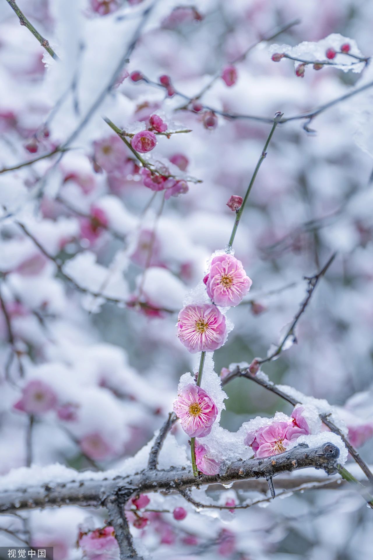 当梅花遇上落雪,仿佛是在天地万物之间偶然遇见知己,山寒水瘦,会意相逢。