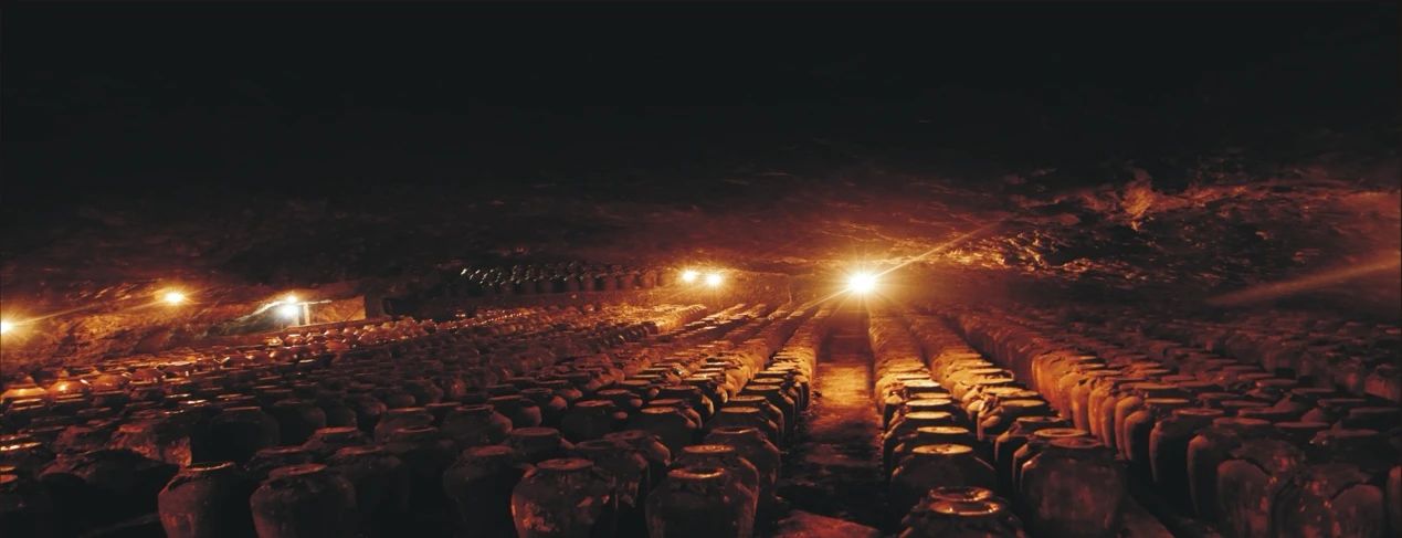 洞酿+洞藏,方能成就天然老酒。龟仙洞内有数千支百龄老坛,被誉为“酒坛兵马俑”,排列整齐,蔚为壮观。龟仙洞现有年份老酒1万吨,基酒储存量2万吨。“双洞酿藏”工艺相辅相成,造就了国帅·龟仙洞酒的优质和稀缺。
