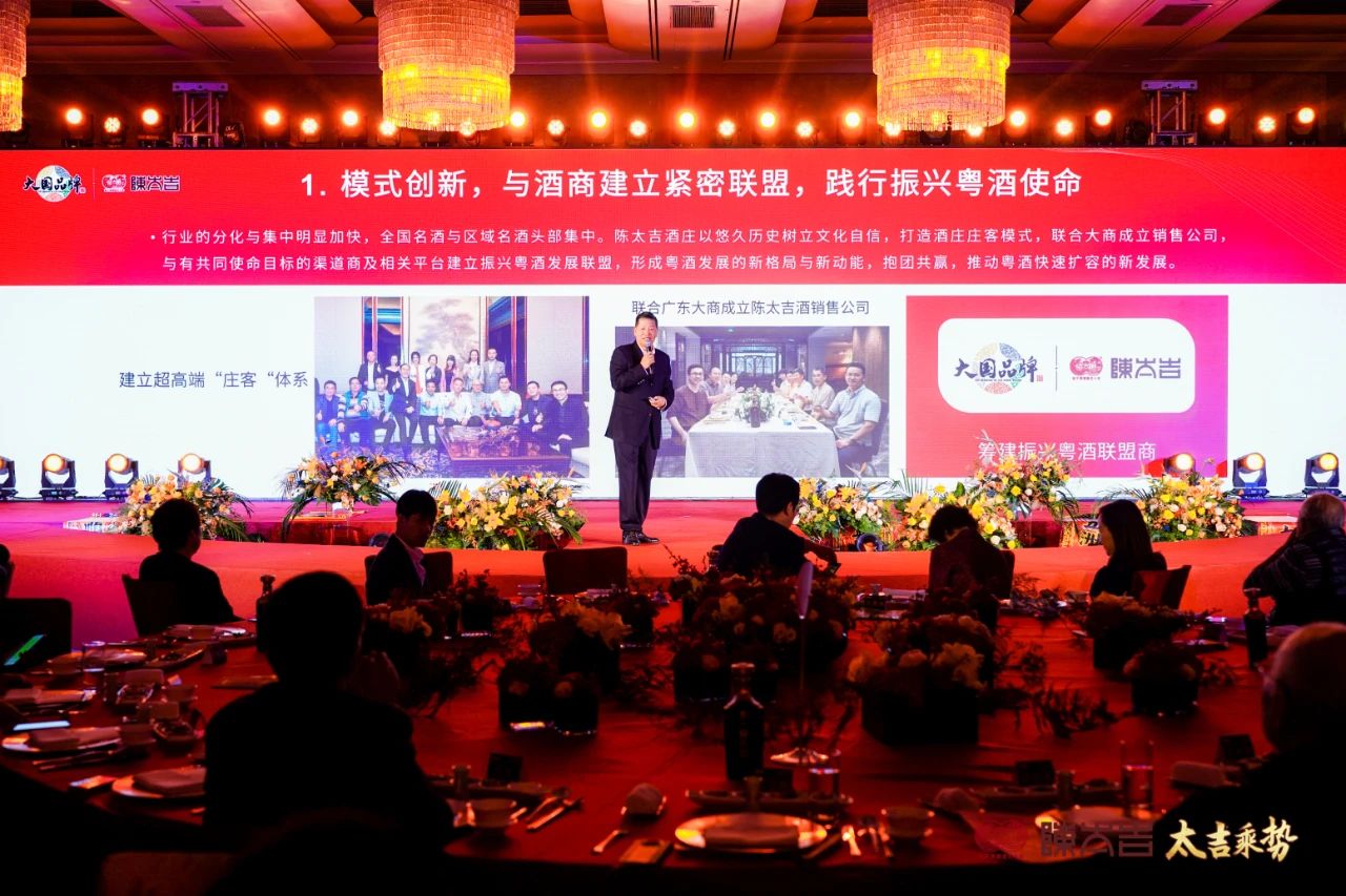 2021年12月1日,振兴粤酒龙头工程“太吉乘势”在广州拉开帷幕。 活动由广东陈太吉酒销售有限公司主办,广东岭南酒文化研究院、岭南酒文化博物馆协办,广东省酒类行业协会支持。活动期间,广东陈太吉酒销售有限公司举行揭牌仪式,粤酒文化顾问团正式成立,“中国吉宴”文化品鉴会开席。陈太吉酒庄推动粤酒高端化升级,迎来全新阶段。 中国白酒专家梁邦昌,广东省酒类行业协会创会会长朱思旭,广东省酒类行业协会会长彭洪,贵州茅台广东省经销商联谊会会长符小文,广州酒类行业协会创会会长钟秉雄,广州酒类行业协会会长陈鹏,广东石湾酒厂集团董事长、陈太吉酒庄庄主范绍辉,广东石湾酒厂集团党委书记周文燕,以及经销商代表和媒体记者共400人参加了此次活动。 ❶ 粤商卖高端粤酒 五家大商加盟 2010年,陈太吉酒庄率先提出“振兴粤酒”战略,对振兴粤酒进行探索。2020年以来,陈太吉酒庄先后开展“开库大典”“中国白酒酒庄文化峰会”“岭南范局”、“太吉开元”等多项标志性活动,并联合粤酒大商成立广东陈太吉酒销售有限公司,携手开拓粤酒市场新版图。 会议期间,范绍辉发表《振兴粤酒正当时》主题演讲,通过对粤酒的历史底气、现实缺位及未来可观的阐述,论证了粤酒崛起的必然性。 ▲范绍辉 此外,范绍辉还从粤酒的历史文化、酒曲及原材料、工艺、风格、体验、精神、场景、礼遇、市场、盈利优势等方面深入分析,提出了粤酒振兴的“十大底气”。在进一步介绍陈太吉酒庄践行“振兴粤酒”使命的系列举措时,范绍辉提出了“让粤酒实现价值回归”的行业号召。 在活动现场,梁邦昌、彭洪、范绍辉、符小文等多位酒业大咖,共同为广东陈太吉酒销售有限公司进行揭牌。广东陈太吉酒销售有限公司的成立,实现了陈太吉酒销售模式的具体落地,打开了“粤酒大商做高端粤酒”的新局面,全面提速粤酒高端化进程。 ▲彭洪 广东省酒类行业协会会长彭洪对陈太吉酒庄“振兴粤酒”的战略行动表示高度认同。他认为,此举反映了高端粤酒市场具备的巨大潜力,发挥了“振兴粤酒”酒商联盟效应,对“粤商做粤酒”起到了积极的示范和引领作用,也必将加快粤酒振兴速度和扩大粤酒市场规模。 据悉,陈太吉酒自2021年1月份在“太吉开元”活动上正式上市,经过近一年的市场运作及品牌传播推动,获得了行业及社会的高度认可。 “陈太吉酒”不仅在3月份举办的广东酒业大会及其他重大行业活动频频亮相,同时代表粤酒产品在旧金山世界烈酒大赛(SFWSC)、酒严选·成都国际烈性酒大奖赛(CISC)两大国际赛事中荣获金奖。中国白酒泰斗梁邦昌评价陈太吉酒“酒不夺菜味,菜不改酒味”,阐明了产品清雅风格所彰显“粤菜配粤酒”体验的天生魅力。 ▲梁邦昌 梁邦昌表示,陈太吉酒庄在“振兴粤酒”的进程中,做到了“顺势而为,乘势而上,强势出击。”他认为,当下正是粤酒乘势而上的机会期,陈太吉酒庄与符小文、潘利光、简健华、刘建玲、符迪迪等大商结对,成立陈太吉销售公司,为粤酒乘势而上带来利好趋势。而陈太吉酒庄重视文化输出、打造高端产品、强势塑造品牌等做法,成为了“太吉乘势”活动的关键表达。 有业内人士指出,陈太吉酒通过“品质+文化”的系列表达,彰显了其作为粤酒标杆的地位与作用。陈太吉酒以“清雅纯净”的品质特点、传承近200年历史底蕴、以及独具岭南文化内涵等核心价值与差异优势,成为区别于其他高端名酒,又独具广东特色的高端接待用酒选择。 与此同时,“吃经典粤菜,品陈太吉酒”的特色,也已成为广东高端饮食文化的重要标志,在显著提升粤酒品牌高度的同时,有力抢占了粤酒应有的市场份额。 广东尊茅公司、广东友谊公司、广州广兴湖公司、东莞嘉美醇公司、深圳新威海公司5家酒商,在会上与广东陈太吉酒销售有限公司签订经销协议,双方在“振兴粤酒”使命的共同引领下,发挥核心渠道优势,共同推动陈太吉酒对粤酒的标杆引领作用,展开高端粤酒消费者培育、品牌建设、网络搭建、文化推广、场景输出等基础工作,实现高端粤酒向全国覆盖的长远目标。 ❷ 三箭齐发,开创粤酒未来 为了振兴粤酒,广东岭南酒文化研究院发起成立了“粤酒文化顾问团”,成为继“振兴粤酒发展战略委员会”成立后的又一粤酒智库。 2019年,陈太吉酒庄成立“振兴粤酒发展战略委员会”,聚集中国酒业相关机构和行业人才,推动粤酒全方位快速发展。 而此次成立的“粤酒文化顾问团”,则更侧重于通过粤酒文化专家及社会消费核心意见领袖的联合,向社会传播粤酒历史文化、酿制技艺和产品价值。活动现场,梁邦昌、朱思旭、彭洪与范绍辉共同为“粤酒文化顾问团”揭牌。 大会现场,国家级评酒委员、非物质文化遗产项目市级传承人梁思宇发布《陈太吉酒3321品鉴方式》,提出陈太吉酒“清雅纯净”酒体与粤菜配饮的品鉴标准。 陈太吉酒3321品鉴方式,围绕消费者之前是否喝过粤酒,给出了不同的品鉴建议。例如对于喝过粤酒的人,适宜先干3小杯,后品3小杯,达到对粤酒的“印象重置”;而对于之前没喝过粤酒的人,可以先品3小杯,后干3小杯,从而对粤酒“印象初成”,最后在“陈太吉酒”搭配粤菜的和谐体验中,形成对粤酒的自然喜爱。 “3321”品鉴方式,从陈太吉酒品鉴的仪式感,粤酒的风格认知,“粤菜配粤酒”最佳体