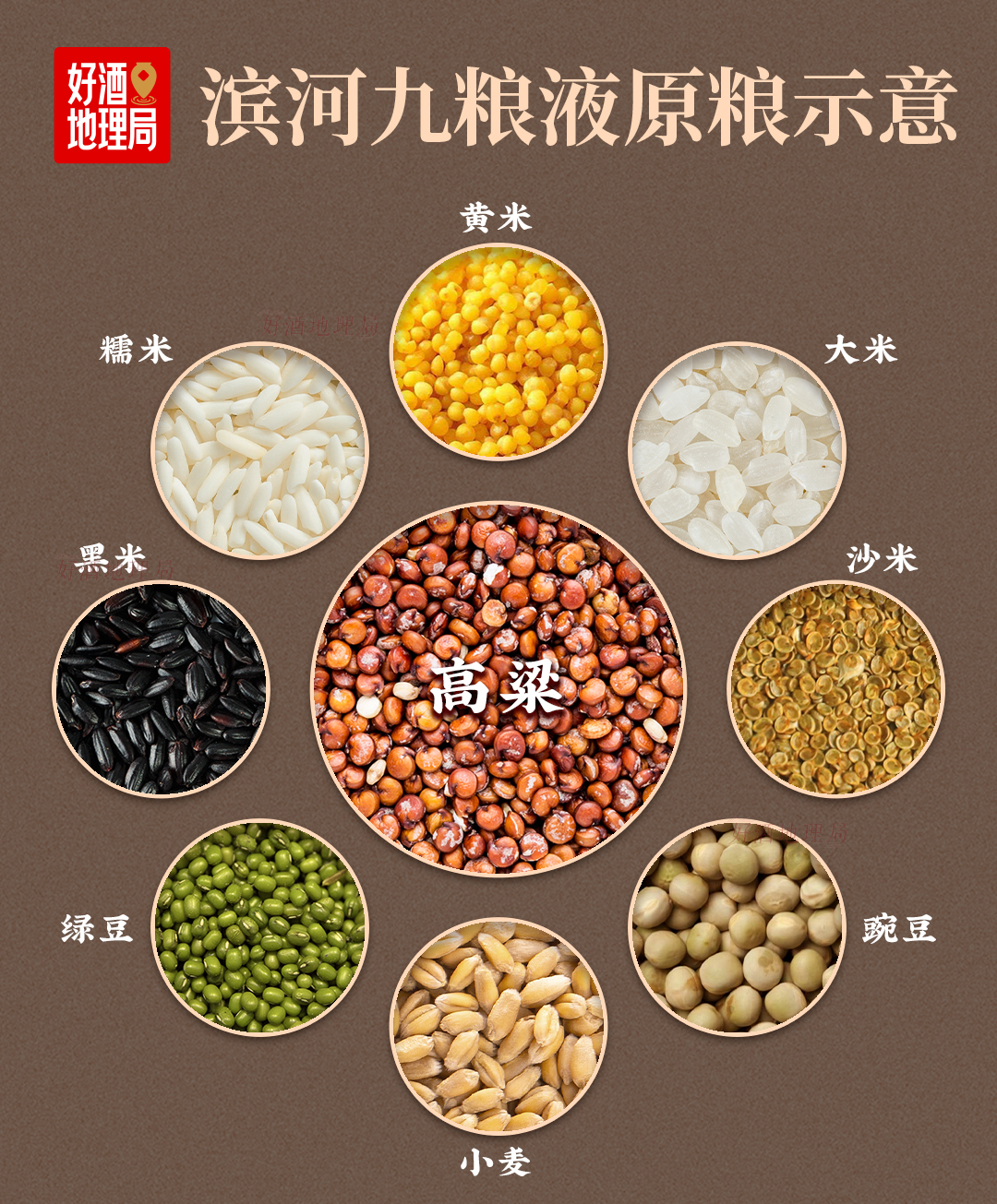 数不清的实验和工艺流程,让滨河在一步步地摸索中找到了正确方向,不仅确立了高粱、小麦、沙米、大米、糯米、小米、玉米、绿豆、豌豆为一体的九粮搭配,还采用六曲共酵工艺,在大曲中增加了胡卢巴、黄芪、川芎等草药,为酒体带来草本的清香,提升饮后舒适度。