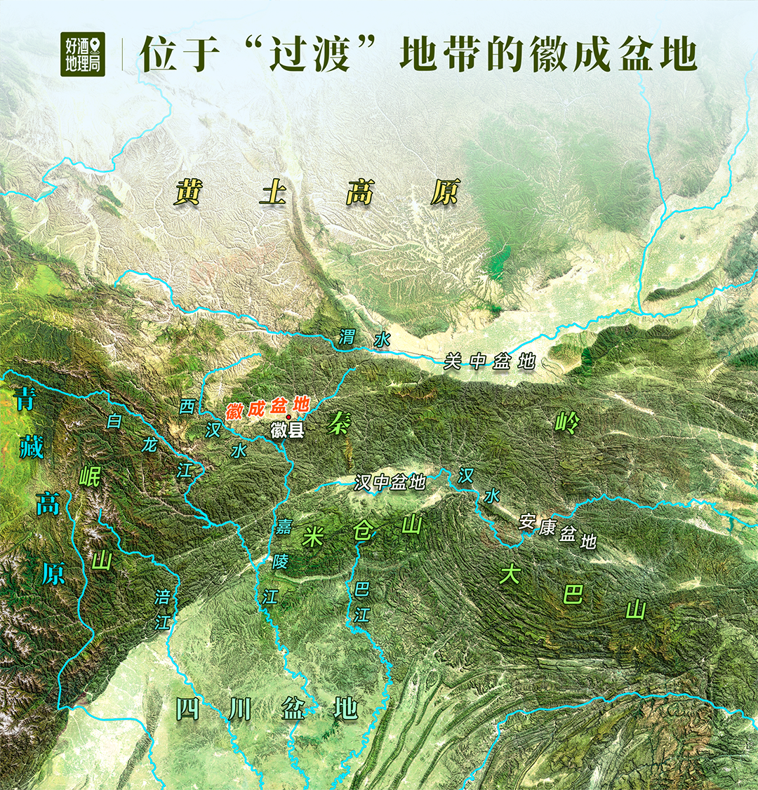 而徽成盆地完美契合了以上条件。它位于秦岭群山之中,地势凹陷、河道纵横,河流水系自此进入汉中谷地及川渝地区,成为长江水系的重要来源。