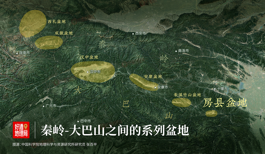 在秦岭、大巴山之间,分布着一系列山中盆地。
