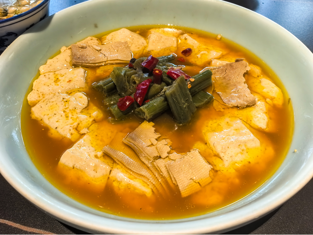 浆水是一种历史悠久、制作简单的传统发酵酸味汤汁。它以面汤为基底,加入蔬菜,并依靠关键的“老浆引子”发酵而成。这种清爽的酸香,是当地人解暑开胃的日常滋味,也深深融入了西北的饮食文化与乡土记忆之中。