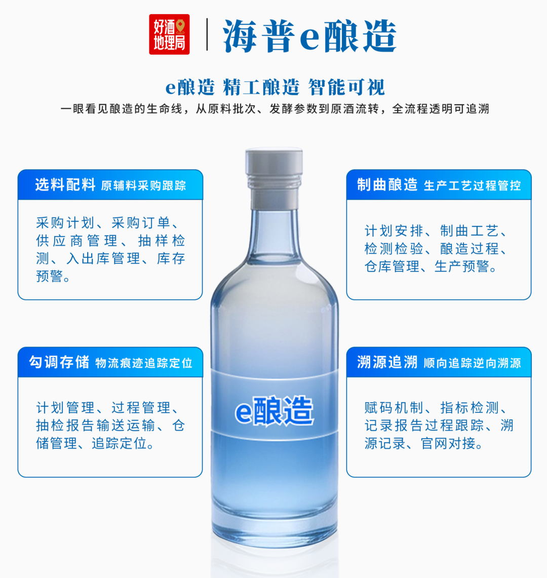 从e酿造的“全过程可溯”到智能摘酒的“关键环节可控”,海普为白酒酿造搭建了一套扎实的数字底座。