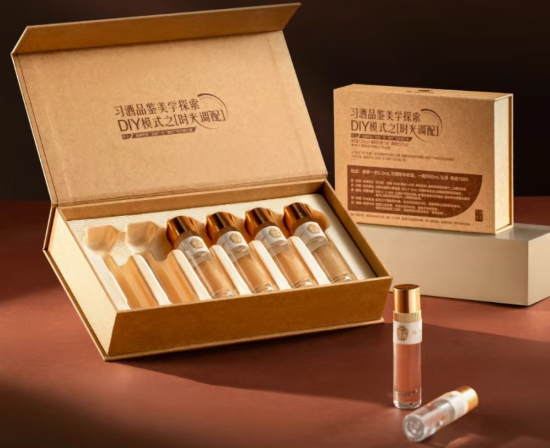 近日,贵州习酒正式推出“习酒5.2mL陈年老酒”。该产品采用单支5.2ml的独立小瓶包装,首次将专业的老酒勾调体验以标准化、便携化的形式引入消费市场。新品每盒含6支独立小瓶,酒精度为53%vol,属大曲酱香白酒。产品设计主打“DIY勾调”理念,鼓励消费者将其与习酒核心产品“窖藏1988”等按不同比例自行调配,探索风味的多样变化。