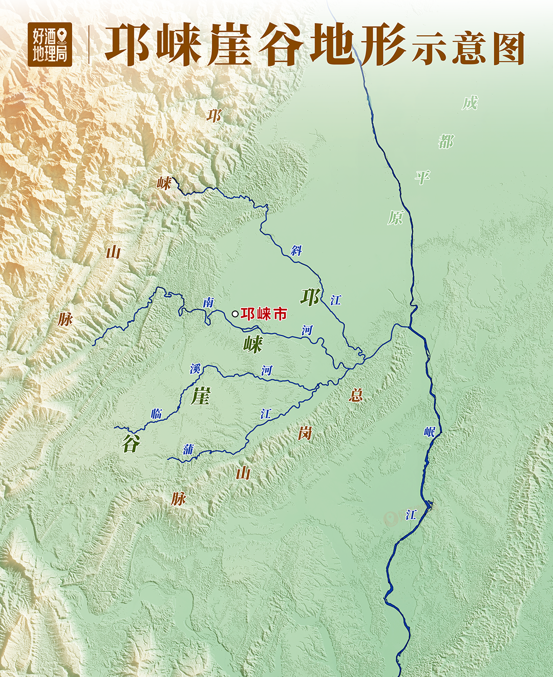 北纬30°黄金酿酒带,温湿适中,四季分明,酿造气候天然卓越。邛崃又地处成都平原西南部,拥有独特的崖谷地形,三面环山,昼夜温差小,空气流动慢,有利于酿酒微生物繁衍,是天然的“酿酒窖池”。