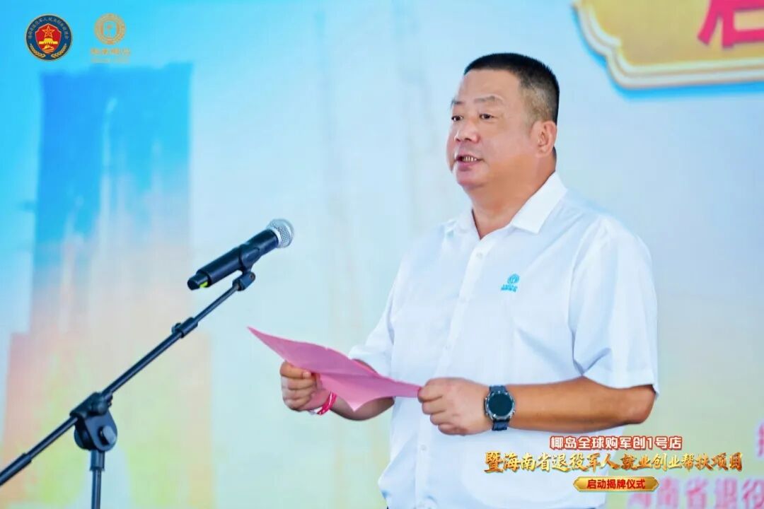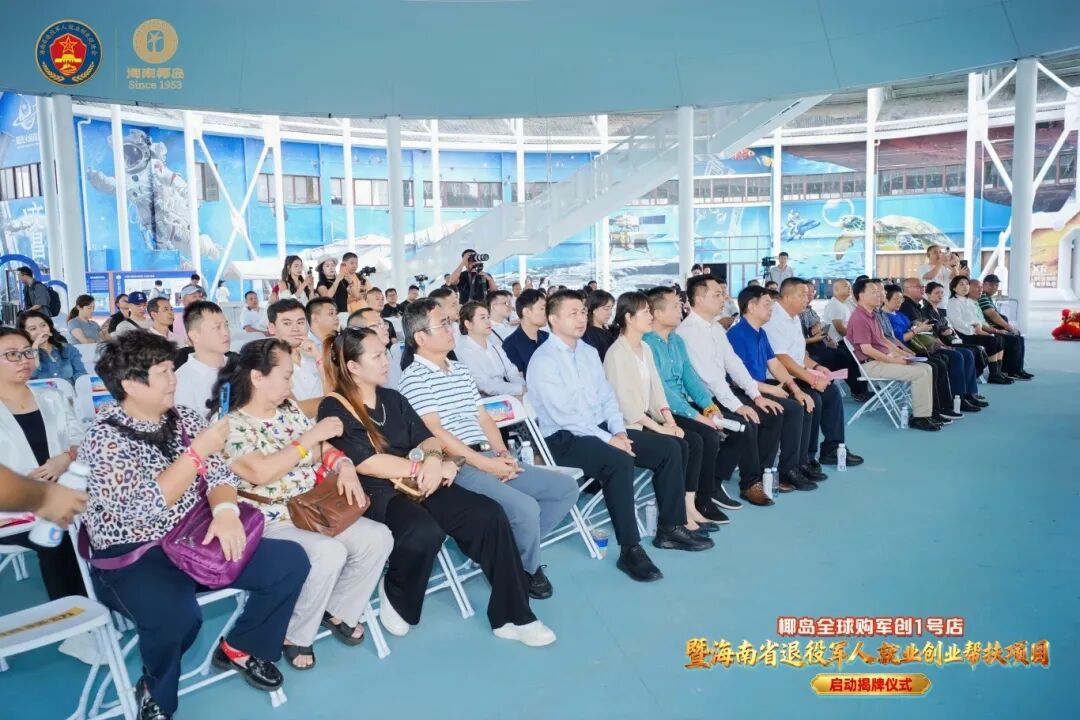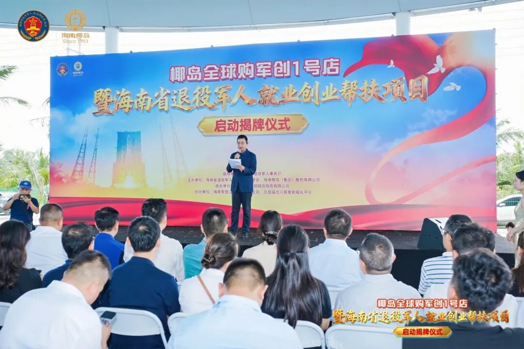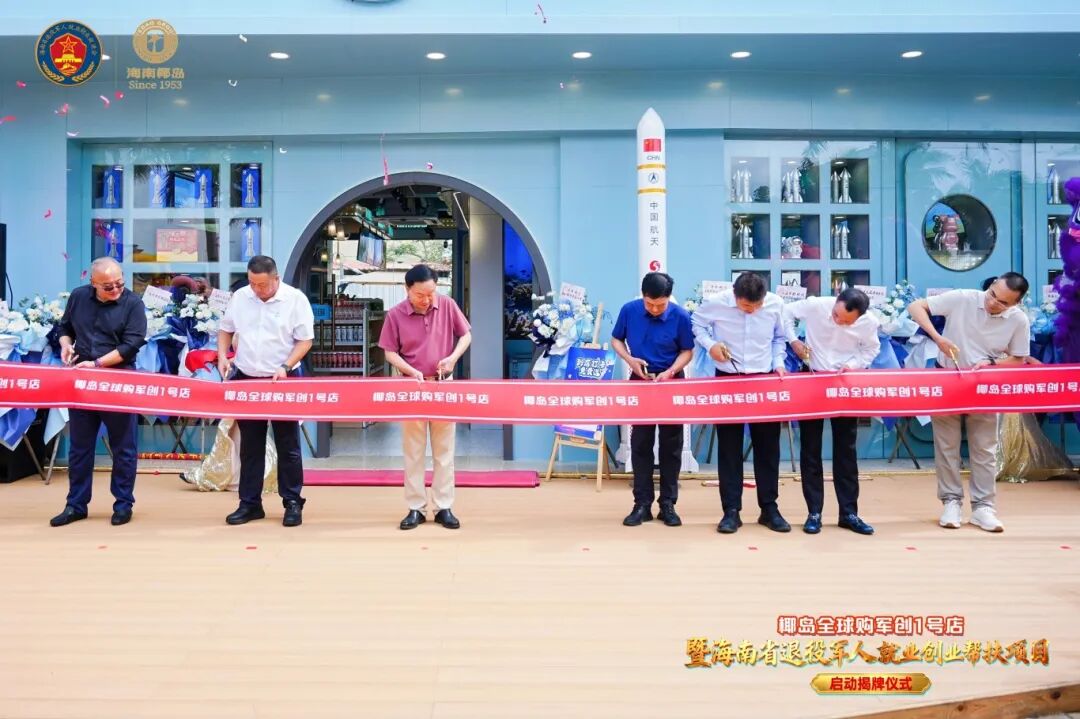 椰岛全球购军创1号店暨海南省退役军人就业创业帮扶项目揭牌仪式在热烈庄重的氛围中启幕。
