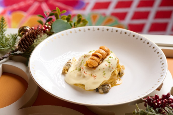 “蔚蓝夏日”于咖啡苑限定呈献推出海胆配蚬肉意大利面(圣诞精选菜式)及香烤和牛排(元旦精选菜式)