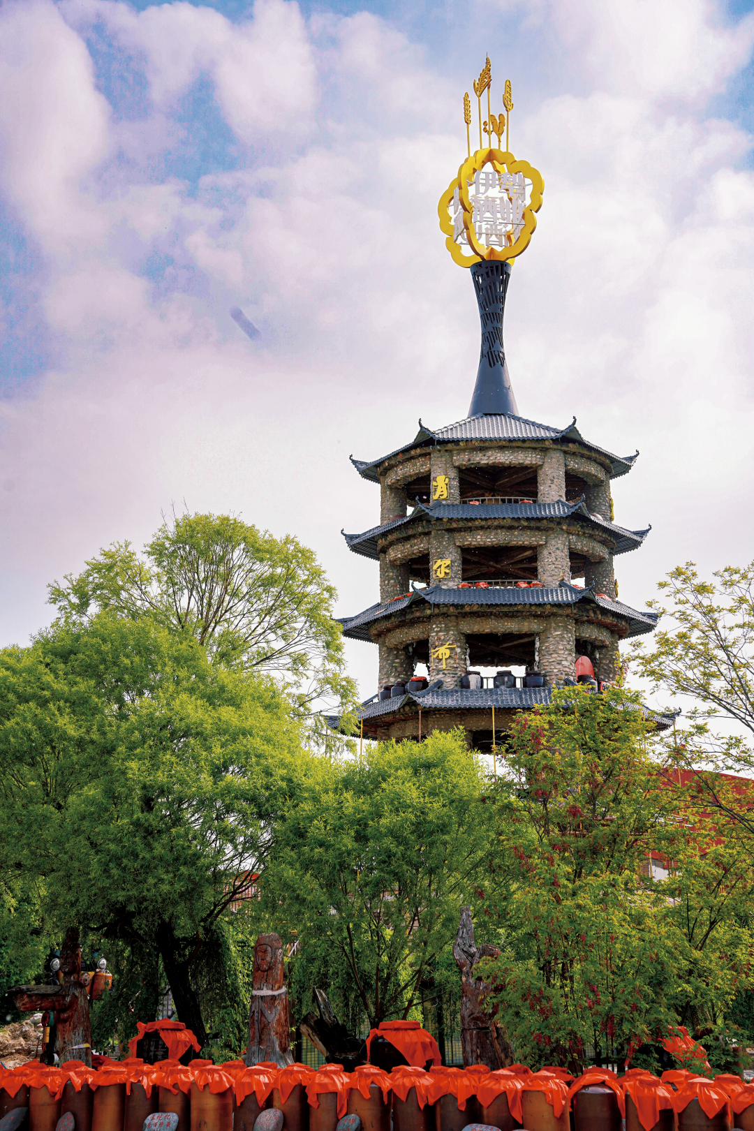 到了广西南丹,丹泉酒业依托喀斯特天然溶洞,设计建造了集储酒和文旅体验于一体的洞天酒海,洞中有可供行车的宽敞空间和精心设计的参观路线。“金屋藏酒”作为洞中的著名打卡点之一,是一栋8层的楼宇,数以千计的陶坛,排满每一个楼层。