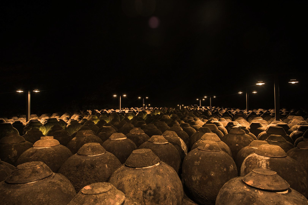在新疆肖尔布拉克,伊犁酒业将储酒陶坛置于露天环境,酒体呼吸着阳光雨露,在自然的抚慰下老熟、陈化。