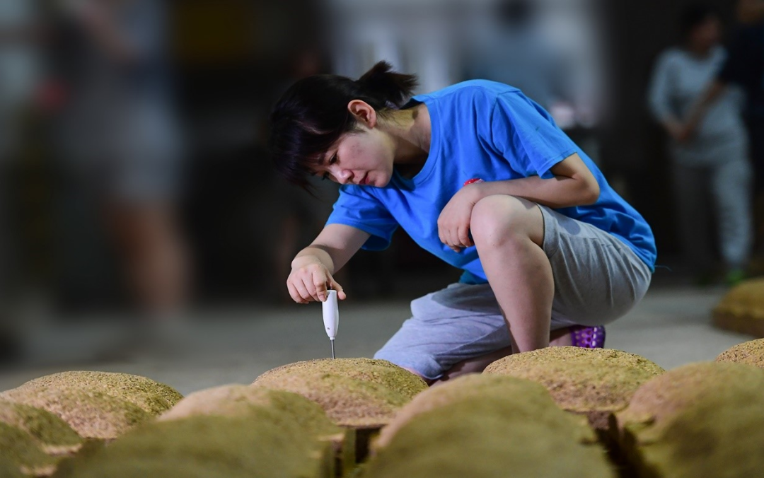 过程中,制曲工人监测着温度变化,进行合理干预,并按照一定的周期进行翻曲,往复几次,直至曲块制成。接下来还要将曲块转入曲库,一般贮存3-6个月后,才能真正投入使用。