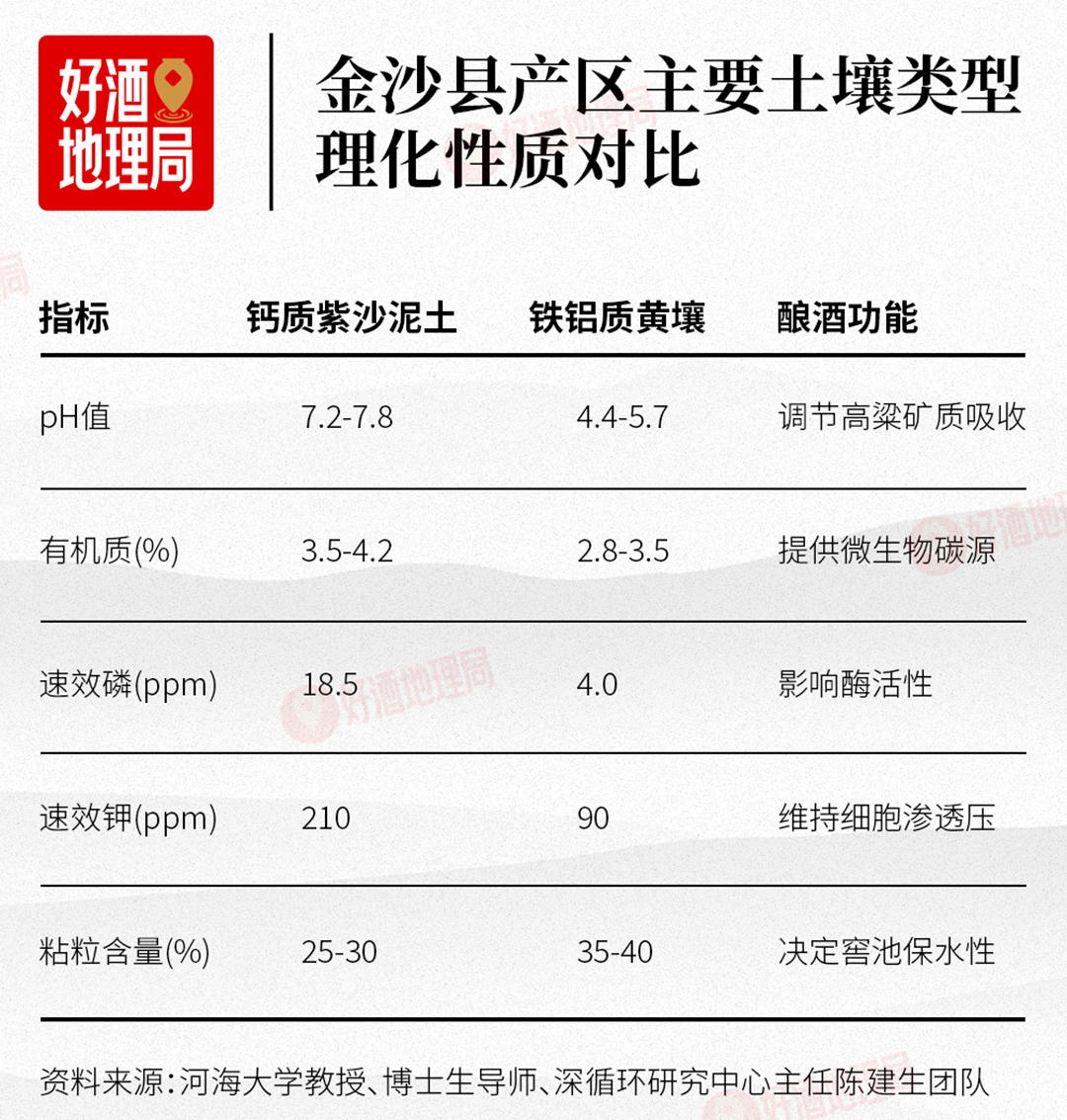 ▎土壤是酿酒生态的根基,亦是风味孕育的沉默载体。金沙县位于赤水河上游,其土壤类型以钙质紫沙泥、铁铝质黄壤为主,富含稀土元素及多种矿物质,形成了独特的“地质-作物-微生物”三级联动系统。摄影@好酒地理局