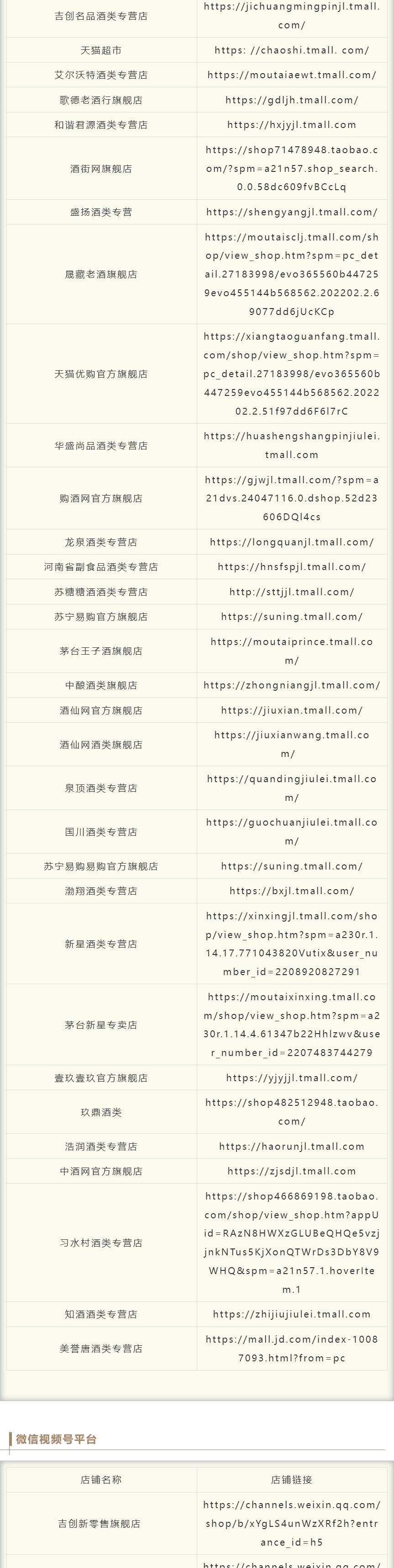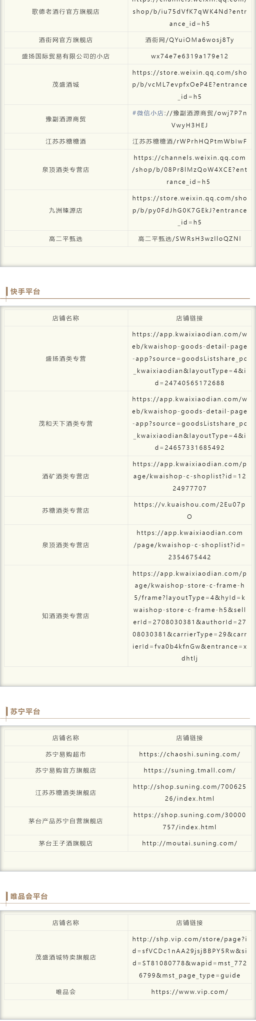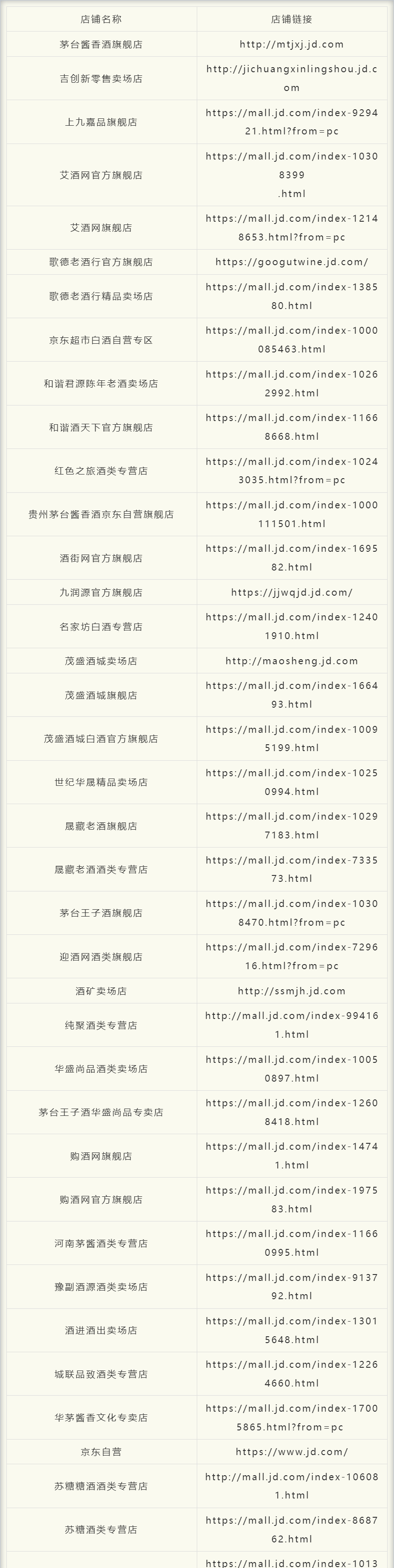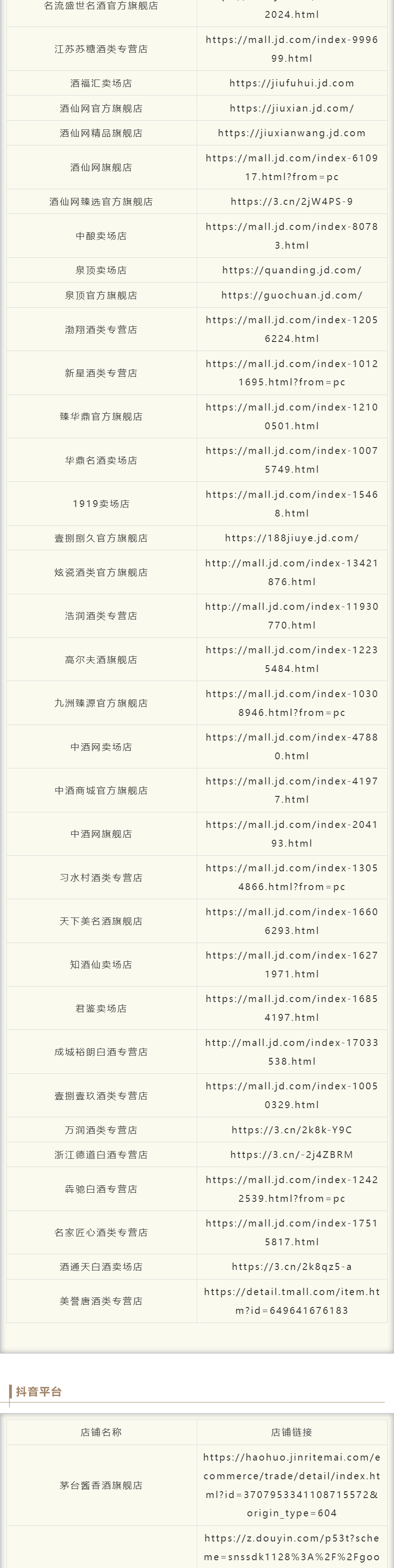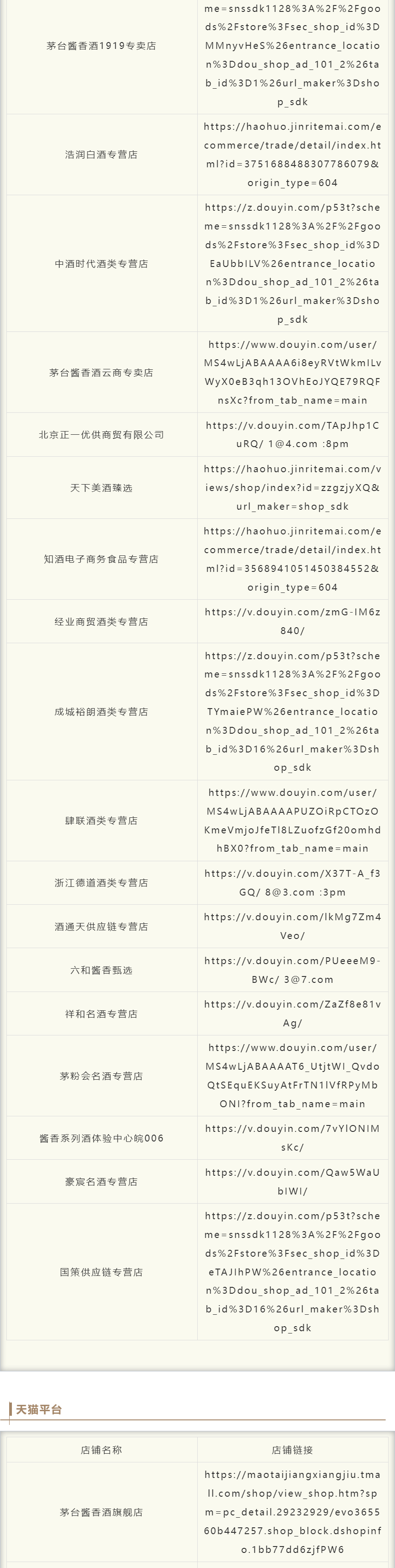 1. 茅台酱香公布官方电商授权店铺名单